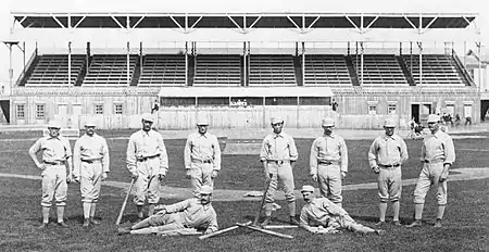 Rhode Island was a hotbed of baseball in the 1870s with several notable amateur clubs along with Brown University's powerhouse collegiate team.[1] In 1875, the semi-pro "Rhode Islands" were formed. After successful seasons (along with excellent paid attendance) in 1875, 1876, and 1877, the team drew the attention of the recently formed National League. When the League elected to drop the Hartford franchise after the 1877 season, Providence was awarded a franchise to replace the Connecticut club.[1]