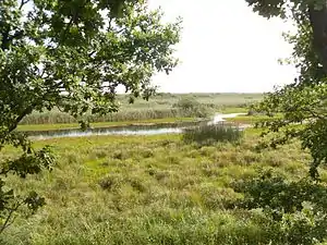 The topography is flat wetlands along the Prypyat and Stokhid rivers. This is suggested by the name of the Stokhid, which means "river of one hundred moves".[1] The site runs along the border with Belarus to the north. Downstream, the filtered waters of the area feed into the Dnieper River and through the middle of Ukraine. The outer boundaries form a shape long and thin, running west-to-east for 50 km, and north–south an average of 10 km.