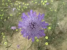 It was included in genus Scabiosa L. for a long time but molecular data demonstrated that genera Pycnocomon and Lomelosia (another Scabiosa-like genus) form a clade distinct from Scabiosa.[2]