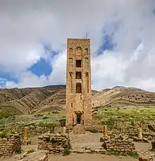 The Hammadid mosque is said to have been the largest mosque constructed in North Africa prior to the twentieth century and it features the typical Maghreb style square minaret.[13] In Qalaat Beni Hammad, the minaret, 82 feet (25 m) in height, is the only remaining part of the ruined Great Mosque; the structure bears some resemblance to Seville's Giralda.[11]