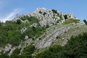 Qarabiy yayla (lit.'Black spider pasture'; Ukrainian: Карабі́-Яйла́, romanized: Karabi-Yaila; Russian: Караби́-яйла́, romanized: Karabi-yayla) is a mountain range and botanical zakaznik (nature reserve) located in Crimea, a region internationally recognised as part of Ukraine but occupied by Russia since 2014. The highest range of the Crimean Mountains, Qarabiy yayla is best known for its picturesque views and large number of caves.