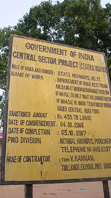 - ↑ Planning and Research Department. "Roads & Bridges" (PDF). Draft Annual Plan 2006–07. Government of Pudicherry. pp. 259–294.