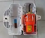 - Walkie-talkie – a battery-powered portable handheld half-duplex two-way radio, used in land mobile radio systems.[98]