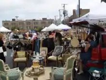 "Memorial Day...marks start of the alfresco shopping season...outdoor bazaars in the West Loop, a full city block--1350 W. Randolph Street, and 1340 W. Washington Street, between Ada Street and Ogden Avenue---is packed with antiques, vintage clothing, midcentury decor, and indie craft vendors..." writes Chicago magazine editors.[6] "During the last weekend of each [summer] month, the Randolph Street Market Festival... [brings] to the Loop an astounding array of Americana and antiques, including home furnishings, art, fashion and jewelry from all decades and all parts of the globe."[7]