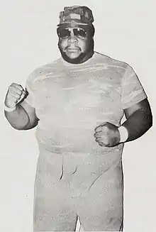 He later formed a duo with Ed Gantner, known as the Shock Troops, working for the CWF.[3] On November 25, 1986, Canty, while still working as Kareem Muhammad, defeated Barry Windham to win the NWA Florida Heavyweight Championship, holding it until December 2 where he lost it to Ron Simmons.[17] He later teamed up with Hacksaw Higgins to win the NWA United States Tag Team Championship, although the duo only held it for a day.[13] In late 1986 Candy worked a tour with New Japan Pro-Wrestling under the ring name "Super Mario Man", a moniker that seemed more appropriate for an Italian plumber than a 6 ft 5 in (1.96 m), 410 lb (190 kg) African American wrestler.[1][18] In 1987 he travelled to Puerto Rico, working for the World Wrestling Council (WWC) where he won the WWC Puerto Rico Heavyweight Championship on June 6from Mighty Igor, holding it for about six months before losing it to Miguel Perez, Jr.[19] In 1988 he took the ring name "Commando Ray", teaming with "Commando Boone" (AKA Grizzly Boone) to for a team known as "The Commandos.[3] Candy's last major match was at the 1988 Starrcade, where he was a part of a Bunkhouse Battle royal, a match that was only seen by the audience in the Norfolk Scope.[20]