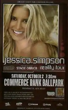 The Reality Tour was the second concert tour by American recording artist Jessica Simpson. Predominately visiting the United States, the tour supported Simpson's third studio album, In This Skin (2003).[1] According to the singer, the title derives from her recent success on the reality TV series, Newlyweds: Nick and Jessica, while showcasing her music on a natural level. The tour began in Chula Vista in May and ended in October in West Springfield.