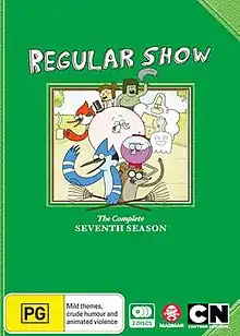 The seventh season of the American animated comedy television series Regular Show, created by J. G. Quintel, originally aired on Cartoon Network in the United States, and was produced by Cartoon Network Studios. Quintel created the series' pilot using characters from his comedy shorts for the canceled anthology series The Cartoonstitute. He developed Regular Show from his own experiences in college. Simultaneously, several of the show's main characters originated from his animated shorts The Naïve Man from Lolliland and 2 in the AM PM. The series was renewed for a seventh season on July 25, 2014, ahead of its sixth-season premiere. The previous season contained 28 episodes to accommodate the film, and this season contained 36 episodes.[1][2]