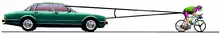 The RI value is also a function of the spatial geometry between the observer, light source, and reflector. Figures 1 and 2 show the observation angle and entrance angle between the automobile's headlights, bicycle, and driver. The observation angle is the angle formed by the light beam and the driver's line of sight. Observation angle is a function of the distance between the headlights and the driver's eye, and the distance to the reflector. Traffic engineers use an observation angle of 0.2 degrees to simulate a reflector target about 800 feet in front of a passenger automobile. As the observation angle increases, the reflector performance decreases. For example, a truck has a large separation between the headlight and the driver's eye compared to a passenger vehicle. A bicycle reflector appears brighter to the passenger car driver than to the truck driver at the same distance from the vehicle to the reflector.[1]