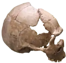 Heberer and Kurth from Göttingen University reconstructed the skull again and carried out fluorine and 14carbon dating on the surrounding material.[3][4][5][6][7] They suggested the skull belong to a 'modern' homo sapiens sapiens. Together with the 14carbon age of the calcareous sinter that surrounded the skull at 8,365 ± 100 BP,[8] the owner of the skull was thus firmly believed to have lived in the late to early Preboreal. This correlates to the Mesolithic period.