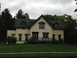 This house was constructed in about 1850 by R.C. Paine, a local banker and for some time the mayor of Niles. Paine died in 1875 and the house was purchased by Henry Lardner, Ring Lardner's father. Ring Lardner was born here in 1885 and lived here until his graduation from high school in 1901, when he moved to Chicago. He returned to Niles soon after, and began his career writing articles on sporting events for the Niles Sun, and then moved on again.[3]