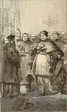 "Barnes and his Fellow-Prisoners Seeking Forgiveness", from an 1887 edition of Foxe's Book of Martyrs, illustrated by Kronheim.