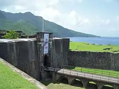 At the end of May 1691 the English under Christopher Codrington, who had taken Marie-Galante, appeared off Guadeloupe.[5] Governor Hincelin was suffering from severe hydropsy, which limited his mobility, and retired into the interior. 400 men under La Malmaison as king's lieutenant delayed the English for a day before being forced back.[6] The French troops retreated into Fort Saint-Charles(fr) and were besieged there by the English.[3] La Malmaison led the resistance of the fort at Basse-Terre for 36 days, when d'Eragny arrived in Guadeloupe with a force of buccaneers and other troops, at which Codrington hastily reembarked leaving behind cannons and some of his wounded.[7]