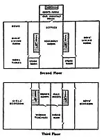 The students also did chores for two hours each day: the boys worked on the farm, in the garden or chopped firewood, while the girls did household duties, assisted with sewing, cooking and washing, and took care of the dining room. The students were provided with three meals a day, and were given plenty of time to sleep and play. Religious study was required, including church on Sunday and praying each morning and evening daily. Every night at dinner, along with singing and praying, every student had to recite a verse, or part of a verse, of Scripture from the Bible.[2]