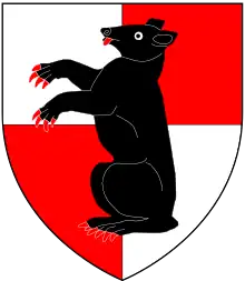Canting arms of Barnard: Quarterly argent and gules, a bear sejant sable[1]