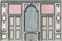 Born in Paris, Robert de Cotte began his career as a contractor for masonry, working on important royal projects between 1682 and 1685, when he was made a member of the Académie royale d'architecture and architect of the Court, ranking third in importance after Mansart's seldom-credited assistant François Dorbay.[3] On his return to France after a six-month sojourn in Italy (1689–1690), in the company of Jacques Gabriel,[4] he became the director of the Manufacture des Gobelins, where not only the famous tapestries, but also royal furnishings were produced; even designs made under his direction for wrought iron balustrading are to be found among the eight volumes of drawings for the Gobelins, and for other public and private commissions, conserved at the Cabinet des Estampes, Bibliothèque Nationale.[5] In 1699, when Mansart was made Surintendant des Bâtiments, a position otherwise invariably reserved for a noble layman, de Cotte became his second-in-command in an executive function, charged with overseeing all the files of drawings, the stocks of marble and other materials including those for the royal manufactures of the Gobelins and Savonnerie, with overseeing the bidding process with contractors and with liaison with the Académie, of which he was made a member that same year. Fiske Kimball, the chronicler of the Rococo, notes that there are no surviving drawings by de Cotte from this period, nor from the period after Mansart's death in May 1708.[6]