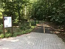 The idea of a set of shared-use trails along Rock Creek and the Potomac was born in the 1960s trail movement. In August 1963 the Park Service decided to experiment with ways to make the park more enticing to cyclists and other active recreation, so they closed mile-long Ross Drive to cars from 6 am to noon on Sundays.[2] As part of President Johnson's trail movement, planning for a separate trail system was undertaken by the Department of the Interior in its 1965 "Trails for America" report which identified a shared-use trail along Rock Creek as one of many trails for the DC area. That same year, the “Fort Park System, A Re-evaluation Study of Fort Drive, Washington, D.C.” report suggested running the Fort Circle Trail through the park.[3][4]