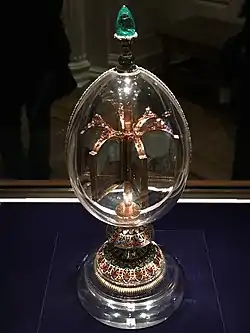 The Rock Crystal egg or Revolving Miniatures egg is an Imperial Fabergé egg, one in a series of fifty-two jeweled eggs made under the supervision of Peter Carl Fabergé for the Russian Imperial family. It was created in 1896 for Empress Alexandra Feodorovna. The egg currently resides in the Virginia Museum of Fine Arts.[1]