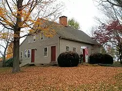 The Roderick Bryan House stands in a rural area of northeastern Watertown, at the northeast corner of Linkfield and Bryan Roads. It is a 1+12-story Cape style wood-frame structure, oriented facing west toward Linkfield Road. It has a gabled roof, central chimney, and clapboarded exterior. The main facade is five bays wide, with a center entrance framed by a 1940s Federal Revival surround of sidelights, doubled pilasters, and a peaked entablature with cornice. An ell extends to the rear (east) of the main block, joining the house to a barn. The interior follows a typical central chimney plan, with chambers to either side of the chimney, and a long room across most of the rear. Stairs to the attic are found in one corner. The interior retains many original features, including wainscoting, chair rails, fireplace paneling, and doors.[2]
