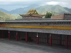 Rongwo Monastery (Tibetan: རོང་བོ་དགོན་ཆེན, Wylie: rong bo dgon chen, formally Wylie: rong po dgon chen thos bsam rnam rgyal gling, simplified Chinese: 隆务寺; traditional Chinese: 隆務寺; pinyin: Lóngwù sì[1]), is a Tibetan Buddhist monastery in Tongren County, Huangnan Tibetan Autonomous Prefecture, Qinghai, China.[2] It is 186 kilometres (116 mi) from Xining.