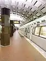 It is one of nine stations on the Metro with platform-level fare gates and elevators (the other eight being the Arlington Cemetery, Ballston-MU, Gallery Place, Judiciary Square, Pentagon, Smithsonian (eastbound only), Takoma, and Tenleytown–AU stations). A new bank of three high-speed elevators and an expanded mezzanine opened officially on October 7, 2013.[18] It replaces the original single street elevator, cutting elevator transit time from about a minute to about 17 seconds. The separate accessible and general entrances are a relative rarity in the Washington Metro system; only Takoma and Tenleytown-AU stations share this feature. The underground hallway to the new elevator bank contains a four-coffered arch like most underground stops on the Red Line that were opened after 1980. This is the only stop on the Blue, Orange, and Silver Lines with this arch. It is also the only stop in the system that contains both the waffle and four-coffer arch design.