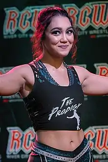 Carla Gonzalez (born November 5, 2001) is an American professional wrestler. She is signed to WWE where she performs on the NXT brand under the ring name Roxanne Perez. She is a former NXT Women's Champion and NXT Women's Tag Team Champion with Cora Jade. Prior to signing with WWE, Gonzalez wrestled under the ring name Rok-C in Ring of Honor (ROH), where she was the inaugural ROH Women's World Champion.