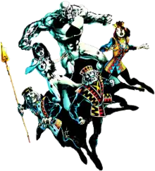 Another cell of the expanded version, this one stylized as a street gang, appear as members of the Society in Villains United and several of its tie-ins in other comics. Ace of Spades was an unnamed buff man in sunglasses, Jack of Spades was Deuce Canyard, King of Spades was an unnamed man in a crown and sunglasses, Queen of Spades is a woman in a ponytail and sunglasses, and Ten of Spades is an unnamed orange-haired woman in sunglasses.[20] It is unclear what ties the third gang has or had—if any—to its predecessors and successors.