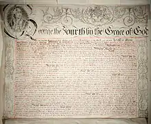 Several of the colonial colleges that predate the American Revolution are described as having been established by royal charter. Except for The College of William & Mary, which received its charter from King William III and Queen Mary II in 1693 following a mission to London by college representatives, these were either provincial charters granted by local governors (acting in the name of the king) or charters granted by legislative acts from local assemblies.[44]