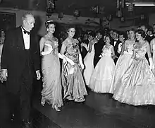 A fireworks display at the Rockhampton Showgrounds on 12 March 1954 signalled the start of week-long celebrations marking the imminent arrival of the Queen and the Duke of Edinburgh in Rockhampton. A street march featuring five marching bands paraded through city streets on 13 March 1954. A riverside carnival along the Fitzroy River on the night of 13 March 1954 was organised by the Rockhampton Spastic Welfare League. The carnival featured square dancing in Quay Street in front of Customs House and a concert on the corner of Denham and Quay Street. A free civic Royal Tour concert was held at the Wintergarden Theatre on 14 March 1954 and a grand Royal Tour ball was held in the School of Arts on 15 March 1954 where music was supplied by two orchestras.[21]