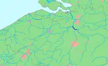 The Rupel (Dutch pronunciation: [ˈrypəl]) is a tidal river in northern Belgium, right tributary of the Scheldt. It is about 12 kilometres (7 mi) long. It flows through the Belgian province of Antwerp. It is formed by the confluence of the rivers Dijle and Nete, in Rumst. It flows into the Scheldt at Schelle. Towns along the Rupel are Rumst, Boom, Niel and Schelle. The Rupel is navigable, and forms part of the waterway to Brussels.
