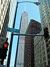 Rush Street is a one-way street in the Near North Side community area of Chicago in Cook County, Illinois, United States. The street, which starts at the Chicago River between Wabash and North Michigan Avenues, runs directly north until it slants on a diagonal as it crosses Chicago Avenue then it continues to Cedar and State Streets, making it slightly less than a mile long.[1] One lane also runs southbound from Ohio Street (600N) to Kinzie Street (400N) as part of a two-way street segment. It runs parallel to and one block west of the Magnificent Mile on the two-way traffic North Michigan Avenue, which runs at 100 east up to 950 north.[2] The street, which is also one block east of the one-way southbound Wabash Avenue, formerly ran slightly further south to the Chicago River where over time various bridges connected it to the Loop, Chicago's central business district.