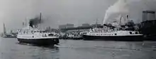A happy Steam Packet occasion on the Mersey, as Manx Maid (right) greets her new sister Ben-my-Chree (left) as she departs on her maiden voyage to Douglas, Thursday May 12th, 1966.