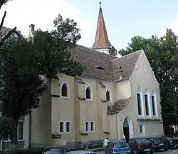 Saint John's Church (Romanian: Biserica Sf. Johannis; German: Johanniskirche) is a Lutheran (Evangelical Church of Augustan Confession in Romania) church located at 30 Mitropoliei Street, Sibiu, Romania. A complex of buildings was raised on the site in 1881-1883 as an orphanage serving the city's Lutherans, with the Neo-Gothic church completed in 1883, the 400th anniversary of the birth of Martin Luther. As there was a danger of collapse, this was demolished between 1911 and 1912, and a new church and priest's residence were built. The church is cross-shaped, with an octagonal steeple to the north and four corner towers. The building is largely unchanged from the early 20th century.[1]
