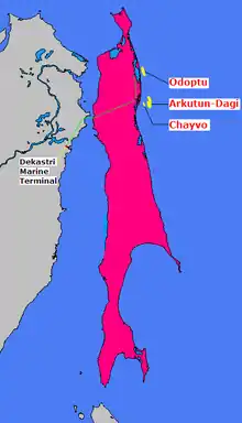 The Sakhalin-I (Russian: Сахалин-1) project, a sister project to Sakhalin-II, is a consortium for production of oil and gas on Sakhalin Island and immediately offshore. It operates three fields in the Okhotsk Sea: Chayvo, Odoptu and Arkutun-Dagi.[1]