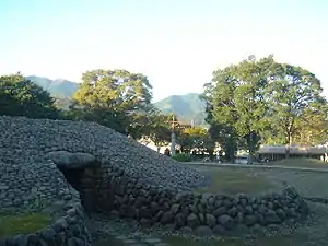 The largest kofun has a diameter of 28 meters and a height of 5.6 meters.