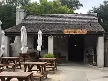 Walls were built of coquina covered over with plaster. The roof is made of cedar shake shingles. The white-stuccoed kitchen was built to show where British occupants had added a kitchen to the existing property. One can see evidence of a standing kitchen in a 1788 Spanish map following Florida's British Period. Construction was completed by the Historic St. Augustine Preservation Board in 1965 and during the time of the living history museum San Agustín Antiguo, the Salcedo Kitchen served as a bakery.[6]