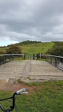 Although now mainly woodland and grass-covered areas, the reserve was once the scene of extensive industrial activity, particularly the extraction of coal, which took place from medieval times until the second half of the 20th century. For example, Saltwells Wood, in the centre of the reserve, contains the remains of medieval coal-mining activity, and part of it was designated as a scheduled ancient monument in 2002.[2][3] Much more recently, the side of Netherton Hill in the reserve, now covered in gorse and grassland, was the site of opencast coal mining in the 1960s. Saltwells Wood contain other traces of industrial activity, the most notable probably being Doulton's Claypit, a site where clay was extracted for many years.[2] The claypit has been designated a Site of Special Scientific Interest (SSSI). Another SSSI within the reserve is Brewin's Canal Section. This site was designated because the canal cutting, dating from the 1858 canal improvements, displays geological strata from the base of the coal measures.[2][4]