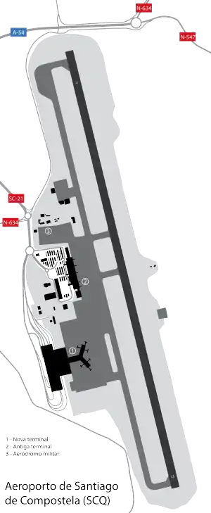 Santiago–Rosalía de Castro Airport Aeropuerto de Santiago–Rosalía de Castro Aeroporto de Santiago–Rosalía de Castro | |||||||||||