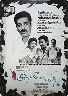 The initial plot of Sathi Leelavathi revolved around two men fighting over a woman, with one of them being the antagonist. Raja, who had grown weary of being typecast in "soft" roles, readily accepted Balu Mahendra's offer to portray the antagonist to break the stereotype, but deep into pre-production, Kamal Haasan felt this premise had been "done-to-death", and according to Raja, "From a bad guy, I became the extreme good guy".[2] Jayaram was initially offered the lead role but his unavailability meant that the team finalised Ramesh Aravind.[3] Kovai Sarala was signed to portray the role of Palani after great debate. While Haasan wanted her in the film, Mahendra was hesitant. Haasan waited for Sarala for six months and brought her on board the film. Sarala later said that Mahendra was delighted that she was part of the film and that he felt bad for initially having doubts in her ability.[4] Haasan speaks Kongu Tamil in the film, which he was said to have learned from Sarala.[5] The film was loosely inspired by 1989 American film She-Devil,[6] but does not depict the female lead trying to establish her own identity at the cost of her husband's.[1]