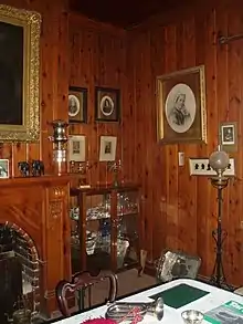 1. The rifle heritage of William Sloane (grandfather of 2012 occupant) consisting of awards, medals, insignia, rifles, trophies, letters and diaries. William competed at the international Bisley competition in 1897 1898, then was part of the Australian team in 1902. He also represented his country in New Zealand competitions. The team was victorious in 1897 and 1902. He was instrumental in modernizing the Victorian Defences with the appropriate rifle. His part in riflemen history has been documented in "The Bisley Boys" by Andrew Kilsby, 2008.[8] These objects are on display in the 1886 timber panelled homestead dining room.[4][1]