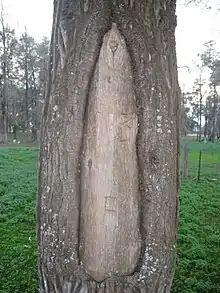 The Bangerang people used the River Murray as a thoroughfare and were famous for their bark canoes: the banks of the Murray today still have a relatively large number of older trees with the wood exposed where bark for canoes was cut out in the early nineteenth century or before [scar trees]. As late as 1848 the squatter E. M. Curr travelled on the river with an Aboriginal guide in a 6-metre-long (20 ft) canoe with a traditional fire "burning on a hearth of clay in the bows" to grill fish or duck en route.[1][2]