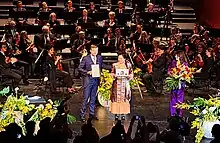Sayragul Sauytbay with the Mayor of Nuremberg at the International Human Rights Award ceremony in Nuremberg on May 15, 2022. Photo: Magnus Fiskesjö.