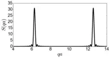 This system, effectively a one dimensional perfect crystal, has a structure factor or scattering function S(q):[4]