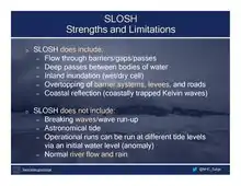 Sea, Lake, and Overland Surge from Hurricanes (SLOSH) is a computerized model developed by the Federal Emergency Management Agency (FEMA), United States Army Corps of Engineers (USACE), and the National Weather Service (NWS), to estimate storm surge depths resulting from historical, hypothetical, or predicted hurricanes.[1] The model functions by taking into account a storm's pressure, size, forward speed, forecast track, wind speeds, and topographical data.