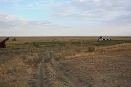 Shalkar-Yega-Kara is the largest lake in Orenburg Oblast. It is an almost round, shallow lake located at the bottom of a bowl-shaped depression in the steppe. Its shores are very gently sloping. Smaller lake Kayrankol lies to the north of its northeastern end. The only river feeding its waters is the Buruktal during the spring season, but in most years it doesn't reach the lake and the Shalkar-Yega-Kara dries completely up.[3][4]