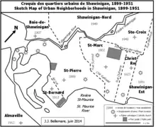 For decades, the local pulp and paper, chemical and textile industries created thousands of jobs and stimulated city growth (see Sketch Map of Urban Neighborhoods in Shawinigan, 1899-1951).