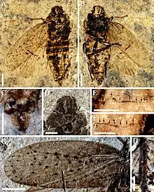 - ↑ Chen, Jun; Wang, Bo; Zheng, Yan; Jarzembowski, Ed; Jiang, Tian; Wang, Xiaoli; Zheng, Xiaoting; Zhang, Haichun (2019-12-17). "Female-biased froghoppers (Hemiptera, Cercopoidea) from the Mesozoic of China and phylogenetic reconstruction of early Cercopoidea". Journal of Systematic Palaeontology. 17 (24): 2091–2103. doi:10.1080/14772019.2019.1587526. ISSN 1477-2019. S2CID 146114370.