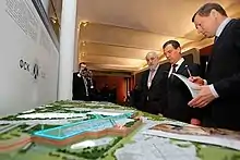 Dmitry Medvedev inspecting a miniature model for the project in 2012