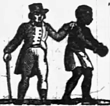 In their day, slave traders were called everything from broker, the entirely generic term preferred in Charleston,[12] to nigger-trader, a term that appears in both slave traders' own descriptions of themselves in oral interviews and in records of African-American folk music of the era. Negro trader and slave dealer were common occupational titles that appeared in census records and city directories.[12] In the earliest years of the market, "dozens of independent speculators...bought lots of ten or so slaves, generally on credit, in Upper-South states like Virginia and Maryland."[6] In 1836 a Philadelphia paper characterized the work of negro brokers: "They conceive the business of pawn brokers and merchandize brokers. They lend money on the security of slaves, taking the latter as a pledge, to be sold if the pledge be not redeemed. They advance cash on slaves to be sold at auction or private sale, deducting from the proceeds of sale their commission and expenses. They buy and sell slaves upon commission, to suit their customers, and sometimes doubtless, buy and sell free people of color on pretence of their being slaves."[27]