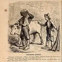 In some cases, a plantation's slaves were asked to volunteer to join the army, and some were excited about the change in tasks.[58] However, the Confederacy had more need for laborers than was filled by slaves. In part, this was exacerbated by the refusal of white Confederate soldiers to join in the necessary labor in many cases.[59] The Confederate government set up impressment bureaus to ensure slaveholders furnished enough slaves. In Texas in June 1863, district commander John Magruder was put in charge of one such bureau, and Magruder was known for his ability to usually succeed in appeals to slaveholder patriotism to acquire slaves rather than impressment.[60] In the West, General Nathan Bedford Forrest led numerous cavalry raids where he captured many slaves who had fled behind Union lines, often sending excess to other commands.[61] Confederate forces also made raids on Union-controlled plantations in the south, particularly along the Mississippi River.[62] When Confederate forces marched North, such as during the Gettysburg campaign under Robert E. Lee, Confederates in Pennsylvania rounded up as many blacks as possible, whether they were free before the war or not. These individuals became part of the spoils of war.[63] Northerners asked camp servants in the Confederate Army marching in the north why they did not flee to freedom. It would have been difficult for them to escape during the campaign, however. Fleeing to the north may not have seemed like an appealing option as, in some cases, northerners expressed their racism and dislike for blacks in the presence of Confederate soldiers and servants.[64]