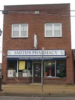 Smith's Pharmacy is a historic commercial building located in the East End section of Newport News, Virginia. It is a two-story brick building. The first floor was built in 1946 to house the pharmacy with the second floor being added in 1952 to serve as office space. The interior of the first floor remains virtually unaltered with the original pharmaceutical retail space, counters, soda fountain and wooden booths. It was the pharmacy of Dr. Charles Calvin Smith, an African-American pharmacist who established the store to serve that community in Newport News. He opened the first black owned pharmacy in Newport News in 1921. The Smith's Pharmacy was sold to the Eckerd Corporation in 1999.[3]